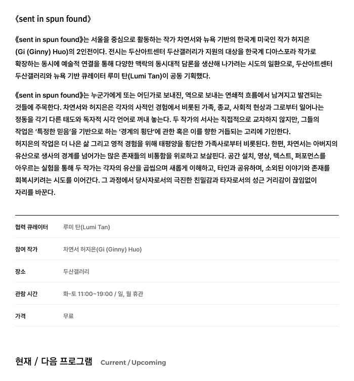 두산갤러리 기획전 <sent in spun found> 10.22 - 12.13 @두산갤러리 2025. 10. 16