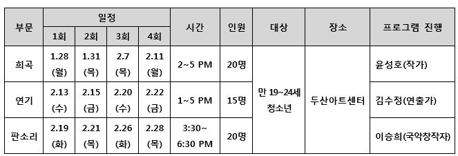 [두산아트센터] 두산청소년아트스쿨 2019: 창작 워크숍 참가자 모집 안내 2019.01.11