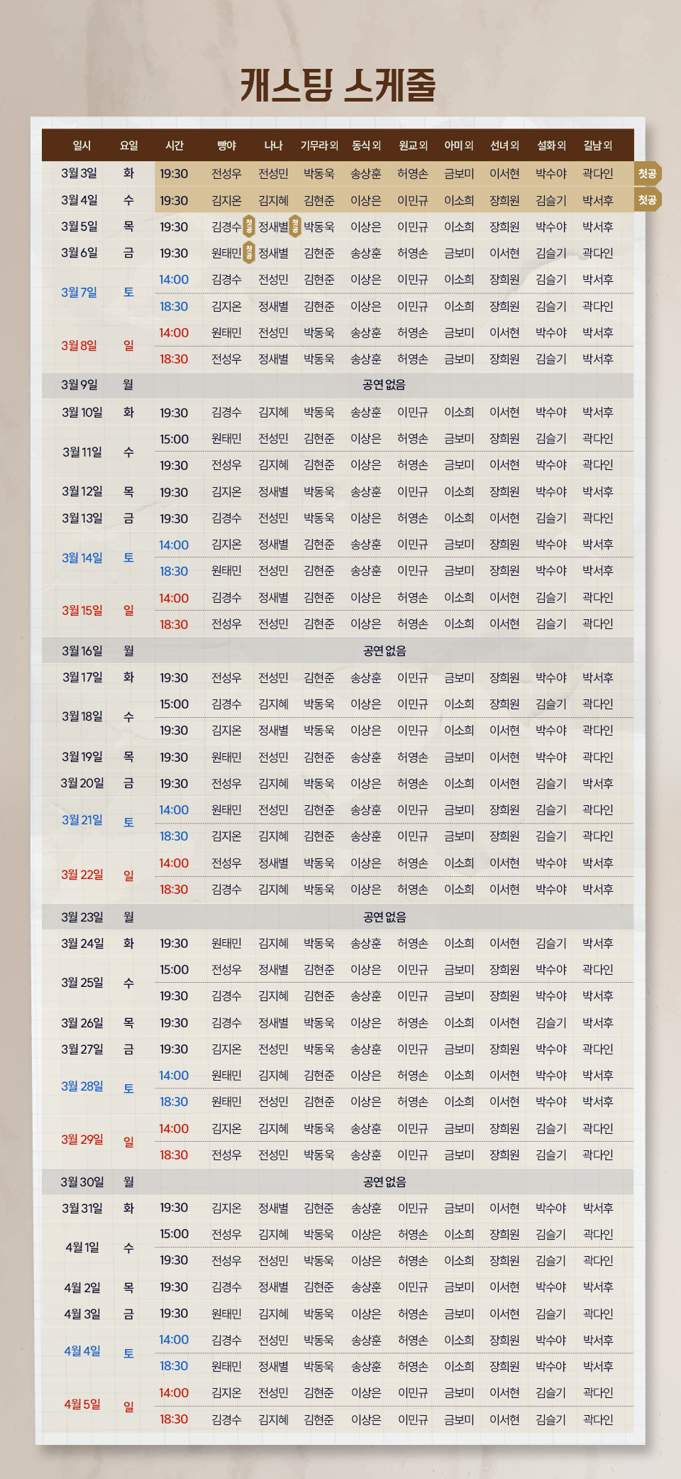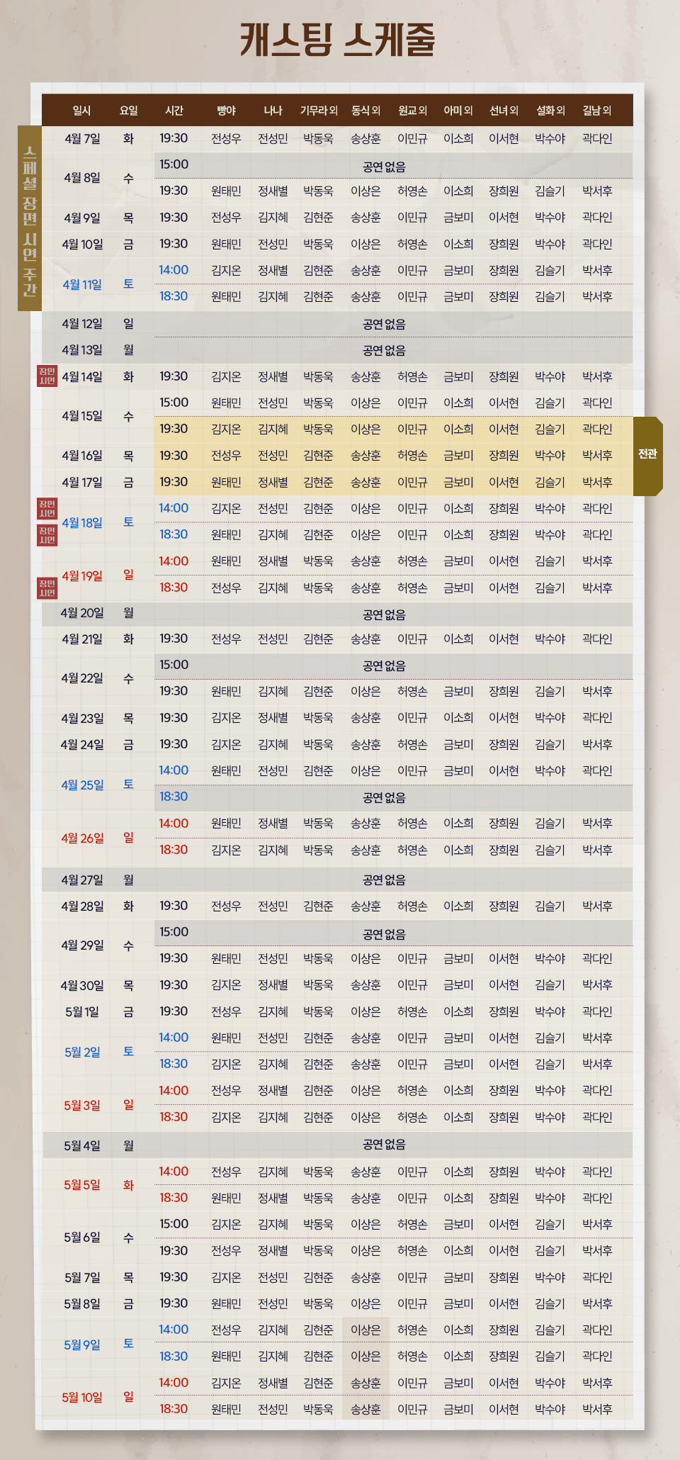- 출연 일정은 배우 및 제작사 사정에 따라 사전 공지 없이 변경될 수 있습니다.